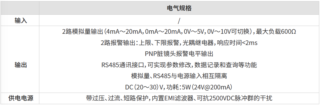 豐富的外設接口:獨立的模擬量輸出、報警輸出、電平輸出、RS485通訊接口